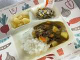 今日の献立は、 〇牛肉と金時豆のカレーライス 〇ごぼうサラダ 〇パインアップ...