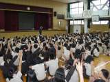 不審者が侵入したことを想定した避難訓練を行いました。 放送を聞いて、先生の指示...
