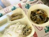 今日の献立は、 〇いわし天ぷら 〇五目汁 〇とり菜っ葉いため 〇ごはん 〇牛...