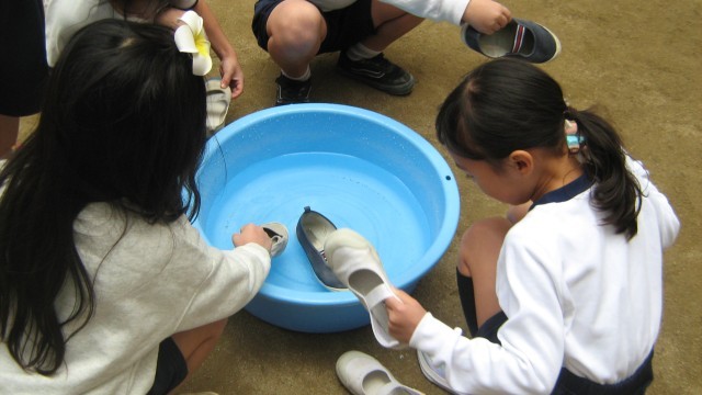 • 1年生 生活科 自分のうわぐつを洗ってみよう
