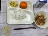今日の給食献立は、ごはん・関東煮・白菜の甘酢和え・みかん・牛乳です。