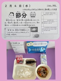 《 節分の行事献立 》・いわしのしょうがじょうゆかけ・含め煮・いり大豆・ごはん・...