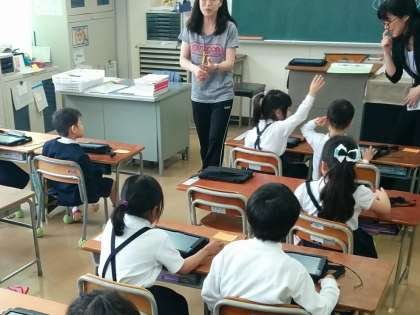 豊仁小学校は本年度、大阪市教育センターから「ICT支援員定期訪問校」に指定されました。今日はICT支援員の方が初めて来られました。