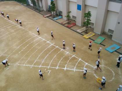 写真は5年生のソフトボール投げの様子です。ソフトボール投げは運動場いっぱいにラインを引きますので、学年単位で順番に行います。今日は1・3・5年生、明日は2・4・6年生が実施します。