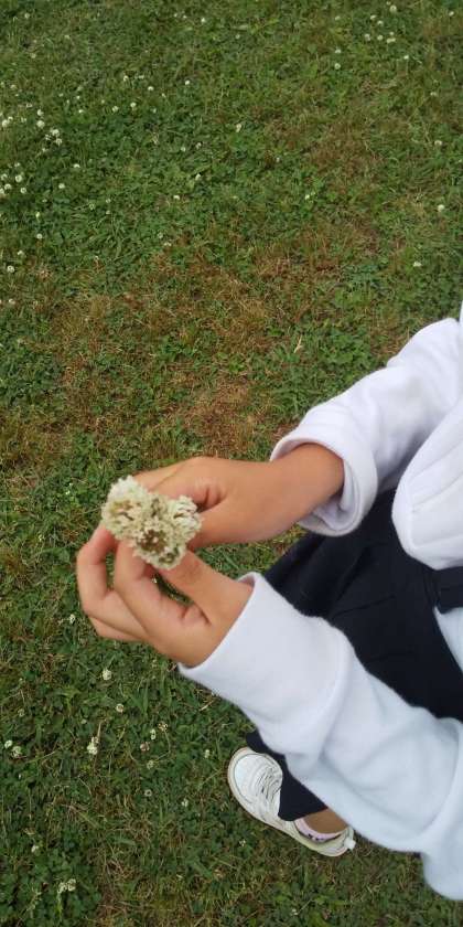 昼食後、遊びました。走ったり、クローバーをとったり、楽しんでいました。