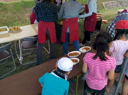 昼食(カレーライス、ゆでたじゃがいも)の様子です。どちらもとてもおいしかったです。