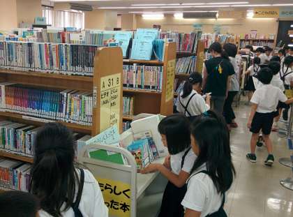 3年生が社会科見学で北図書館に行きました。職員の方に図書館の説明と絵本の読み聞かせをしていただいた後、実際に各自が本を選んで借りました。