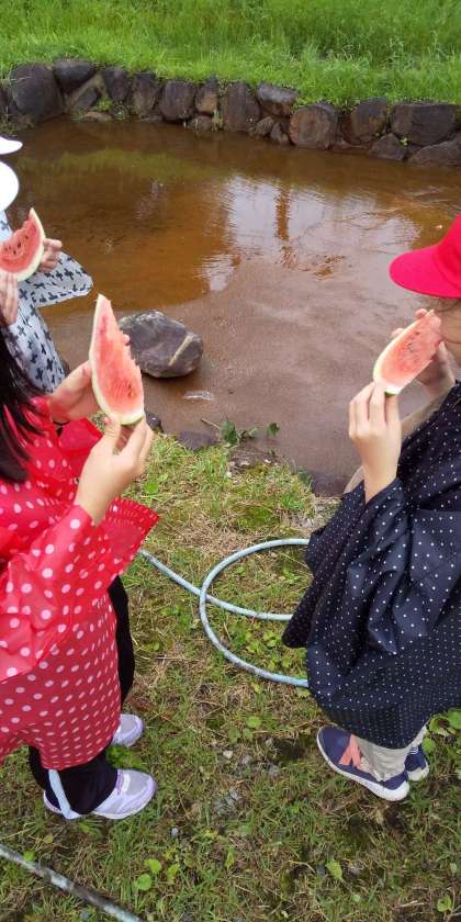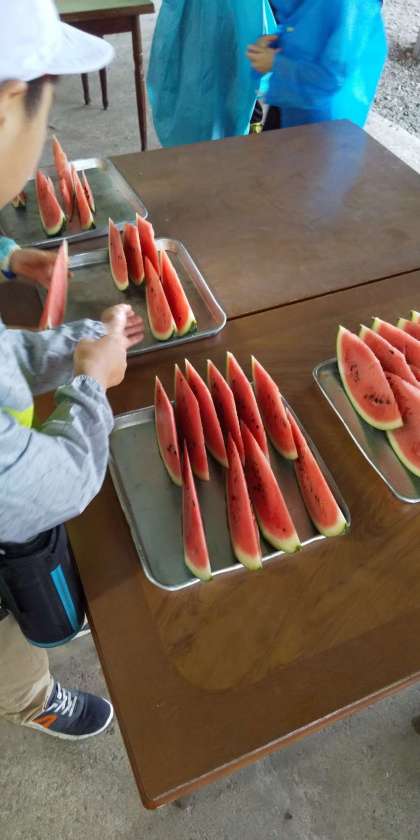 下山後、スイカを食べました。