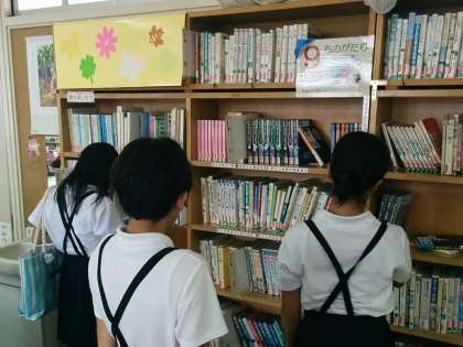 プール開放と同じ時間帯に、図書館開放も行っています。低学年から高学年まで、たくさん子どもたちが利用しています。夏休みに読書量を増やしてください。