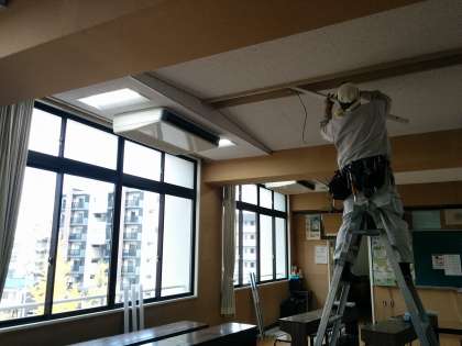 音楽室と図書室の照明をLEDに交換する工事が行われました。音楽室の工事は完了し、図書室も明日に照明がLEDになります。
