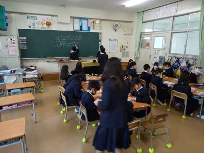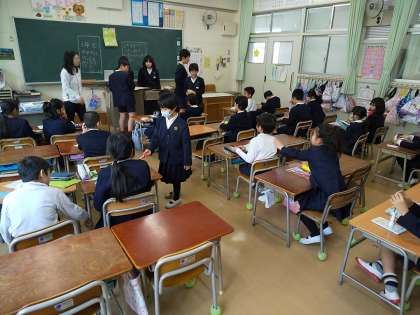 3時間目に1年生〜5年生の縦割り班活動が行われました。6年生の卒業を祝う準備をしました。