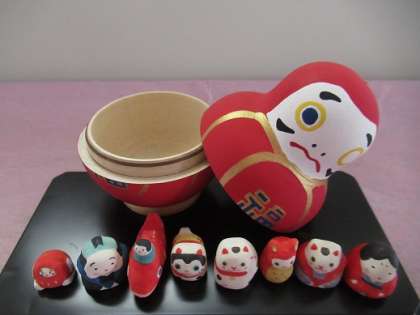 校長室前に、飾っていました。大きなだるまからなんと8体出てきます。
