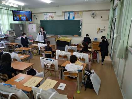 図工の作品やお手紙、道具箱などの学習用具を持ち帰りました。