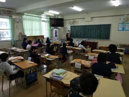 今日の登校は各クラス2分割で、時間を分けて行いました。