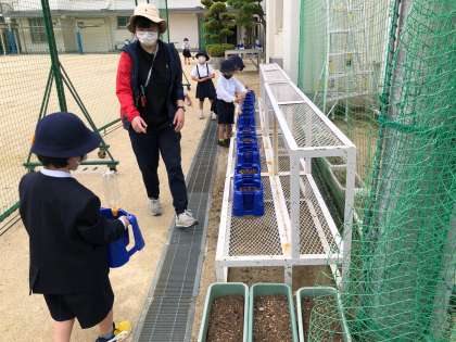 肥料を置いて、水をやりました。