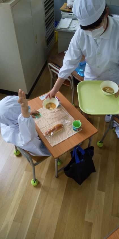 さすが本校の6年生。1年生の給食の配膳をしています。下の学年のことを思う気持ち、大切にしたいです。また、1年生も「ありがとう」と感謝の気持ちが言えています。このことも大切にしたいです。