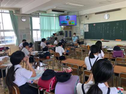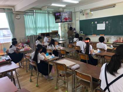 給食の間もビデオを使って勉学にいそしんでいます。素晴らしい!