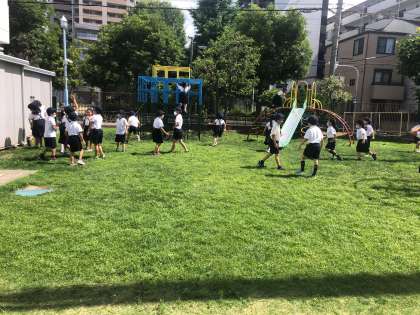 休み時間子どもたちは水やりをしてから遊びに行きます。
