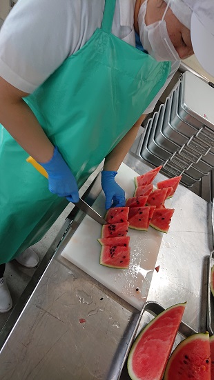 甘い部分が均等になるように切るにはテクニックが必要です。