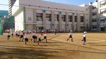 青空のもと、持久走に取り組んでいる様子です。寒さに負けない強い体に育ってほしいですね。