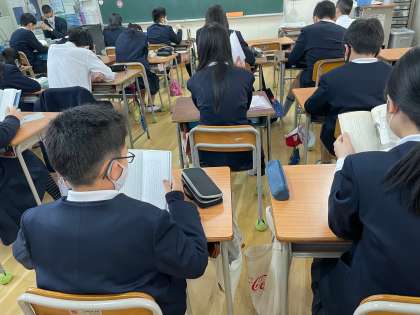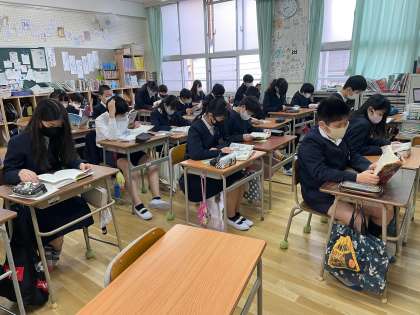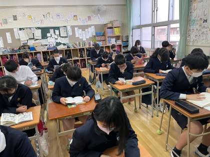 朝の会の時間に15分間読書をします。朝図書委員会の児童が放送で呼びかけてスタートです。それぞれ好きな本を読みます。