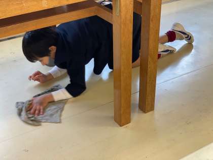 3年1組のお子たちなんと休み時間から来て掃除をしています。素晴らしい!