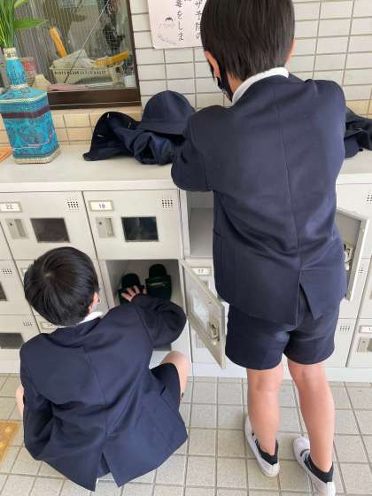 5年生2名来客用のスリッパを綺麗にしてくれています。