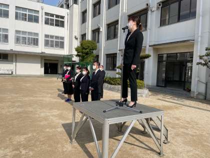 今日から1学期が始まりました。最初に、新しく来られた先生方を紹介する着任式をしました。今年度は校長先生を含めて6人の先生が豊仁小学校に着任しました。