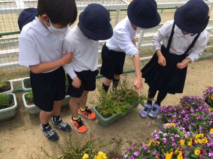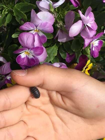 草花のプランターを持ち上げると、いろんな虫がいました。