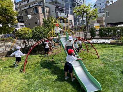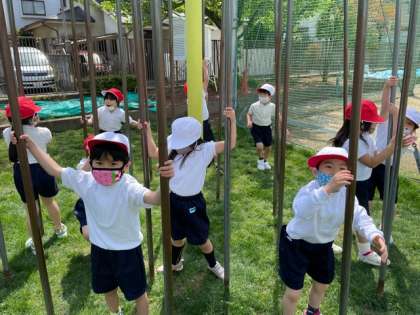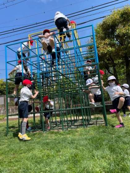 遊具にかわいらしい豊仁っ子が鈴なりです。