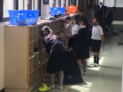 昼休みの終わりのチャイムが鳴ると、みんな一斉に教室に戻っていきます。時間にはきっちりしています。
