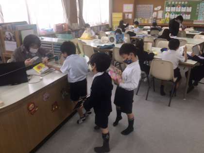 金曜日は図書館補助員の方が来られる日で、図書の時間の後半は「読み聞かせの時間」です。