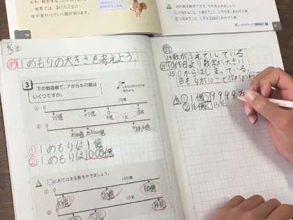 数の大きさや単位の学習をしています。ノートに書く文字も丁寧に上手に書けています。