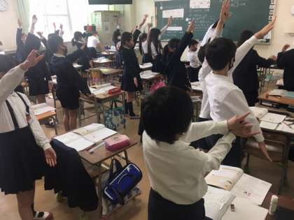一緒に声を出したり、ジェスチャーで回答したり、楽しい算数です。みんな、元気、元気です!