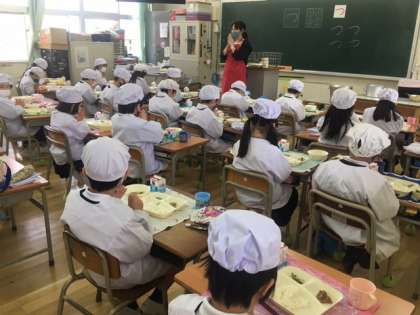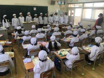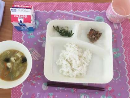 1年生の給食には、毎日6年生が「いただきます」までの準備を手伝ってくれています。1年生だけでできるようになるまでの間ですが、いつ頃まででしょうか〜。毎日、6年生の人たちに「ありがとうございます!」と感謝しながら、「もうすぐ自分たちで頑張ります!」と思ってくれているようです。