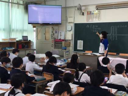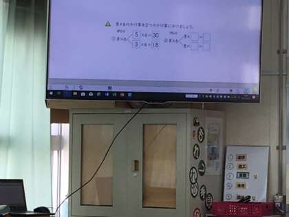 黒板での授業の中で、モニターも使ったりもします。授業でICT機器を使うのはもう当たり前の状態です。