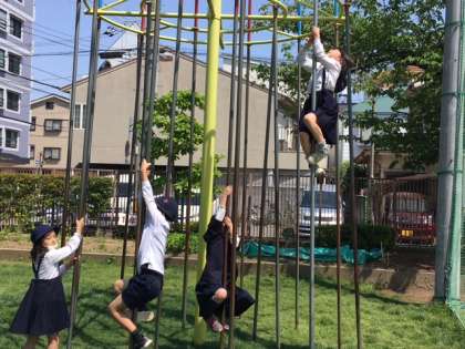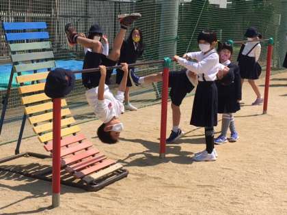 のぼり棒や鉄棒も、結構隠れた人気です。今日は2年生がのぼり棒でくつろいでいます。初めててっぺんに着けた女子もいました。達成感!!
