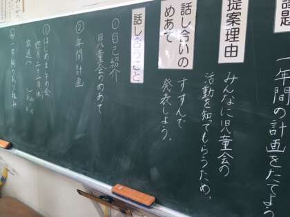 児童会は、自己紹介の後、年間計画を考えたり確認したりしました。