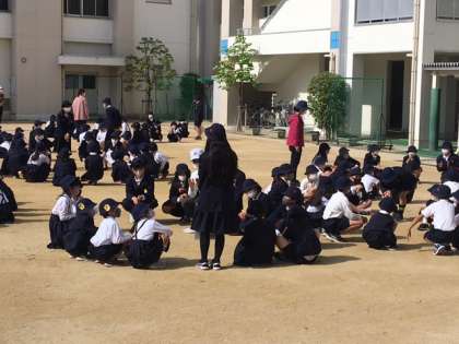 並んだ後、縦割り班ごとで輪になって自己紹介をしました。