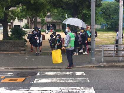 変則の時間帯でも、見守り隊の方々が協力してくださっています。ミニパトも巡回してくださっています。いろんな方々のご協力で安全な登校ができています。