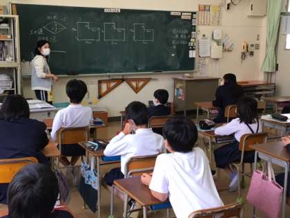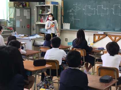 6年生では算数の学習をしています。子どもたちの吸収力がとっても大きい感じがします。カメラのシャッター音も気になるほど集中していました。