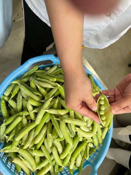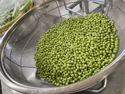 今日は年に一度の「えんどう豆のたまごとじ」です。