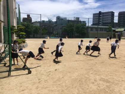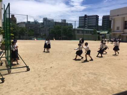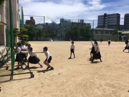 今日は、気持ちのいいくらいの快晴の中、5年生が「だるまさんがころんだ」を大勢でしていました。