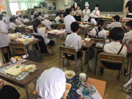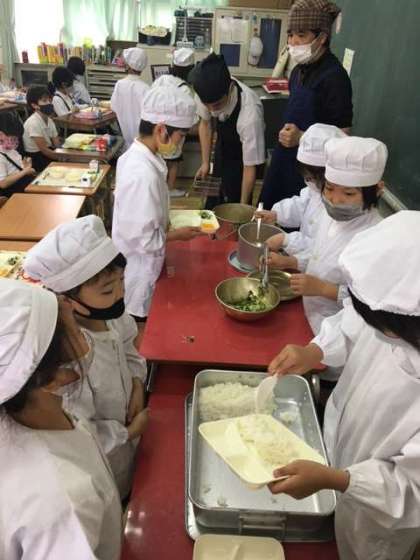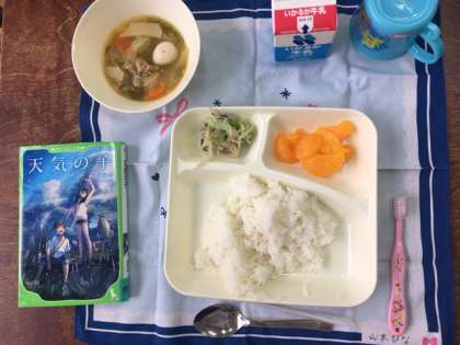 今日の給食献立は、ごはん・八宝菜・チンゲンサイともやしの生姜和え・みかん(缶詰め)・牛乳です。