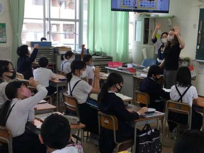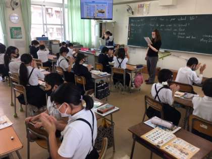 今日はC-NETの先生が来られているので、ビデオで聞き取り学習をしながら、ネイティブイングリッシュで話す練習もします。