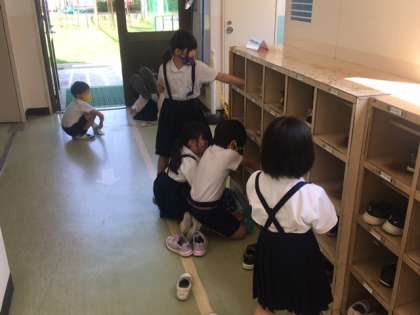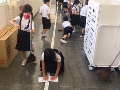 1年生の今日の掃除は、拭きそうじもしました。ぞうきんで徹底的に拭きあげました。