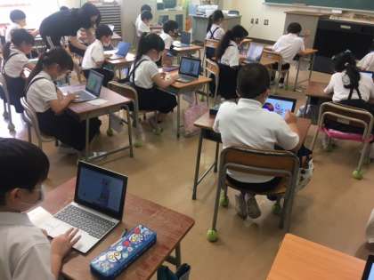 今日はICT支援員さんが来校しています。月に2回ほどICT(パソコン活用)の支援に来られます。