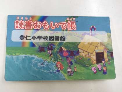 豊仁小学校では、全校児童に「読書おもいで帳」を渡しています。借りるたびに記帳されていきます。写真のような預金通帳のようになっています。読んだ本が増えるたびに、ワクワク感がありますね!