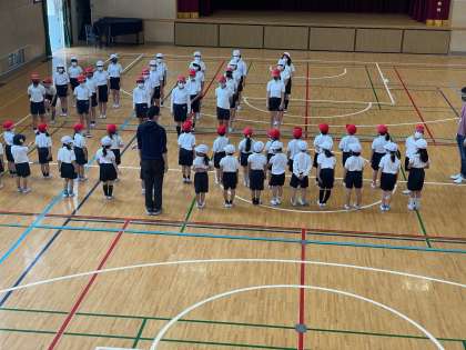 スポーツテストに向けて、1年生が6年生からソフトボール投げのトレーニングを受けました。6年生の丁寧な指導をしっかり聞いていました。最高学年から1年生に伝統が受け継がれていきます。1年生は6年後また新しい1年生に最高学年として教えてあげることになると思います。それまでにたくさんのことを学んでくださいね。