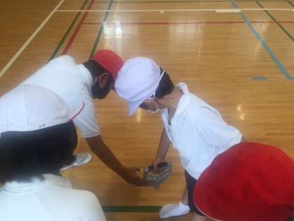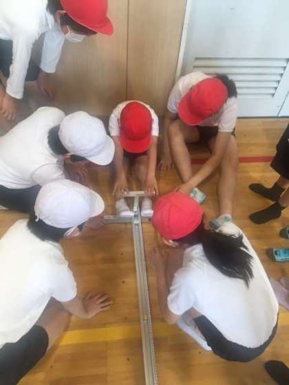 まずは1年生の測定を6年生が手伝ってくれて実施しています。